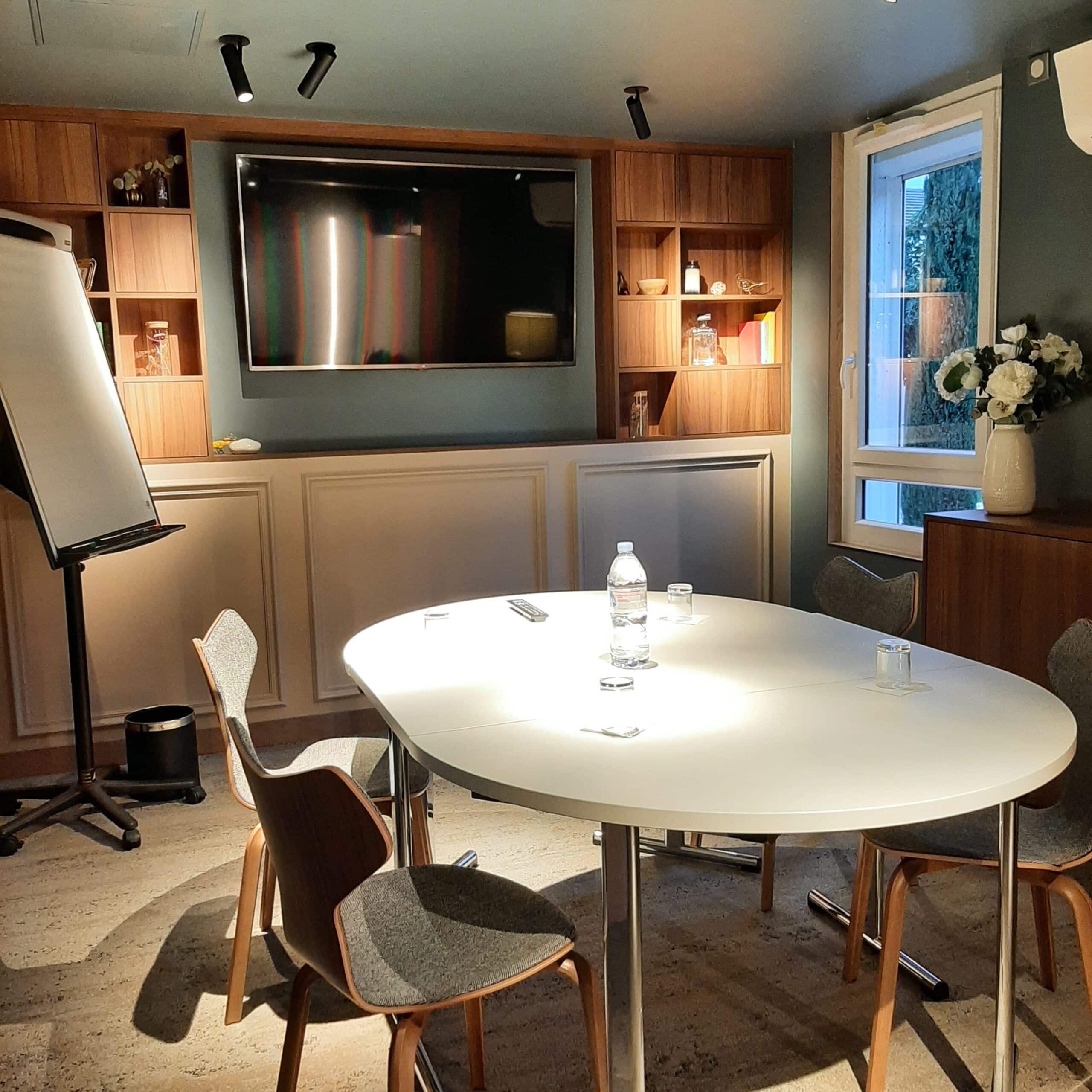 Ce nouveau salon, au rez-de-chaussée, pouvant accueillir un petit groupe de personnes, permet également de vous accueillir pour un déjeuner ou un dîner d’affaires, en toute tranquillité et intimité.